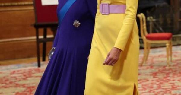 卡米拉王后身着菲奥娜·克莱尔设计的皇家蓝曳地长裙,佩戴蓝宝石钻石王冠与钻石项链。三位女士虽都穿着及地长裙,但梅拉尼娅的露肩设计因展现肌肤被批"不合礼仪"。