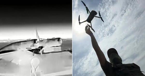 乌克兰国防部在社交媒体发布的视频,疑似捕捉到军机被命中的瞬间。某个片段中,观众能清晰看到无人机精准锁定其中一架飞机。